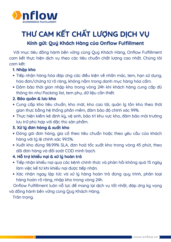 CAM KẾT CHẤT LƯỢNG DỊCH VỤ